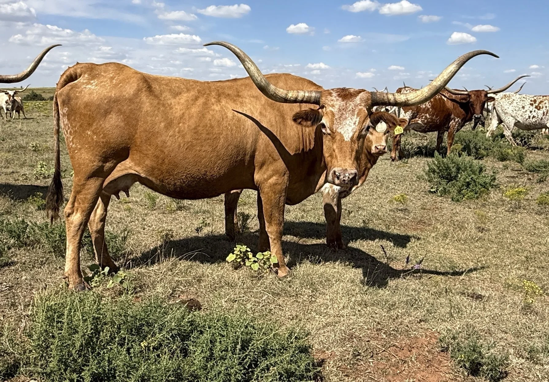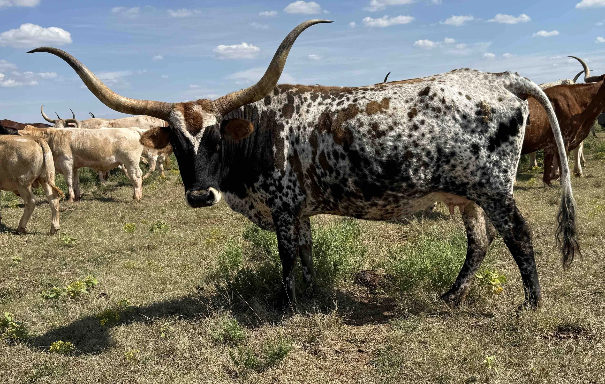 Explore the images below to meet our herd of Texas Longhorns, each uniquely bred and raised with care on our family-operated ranch.